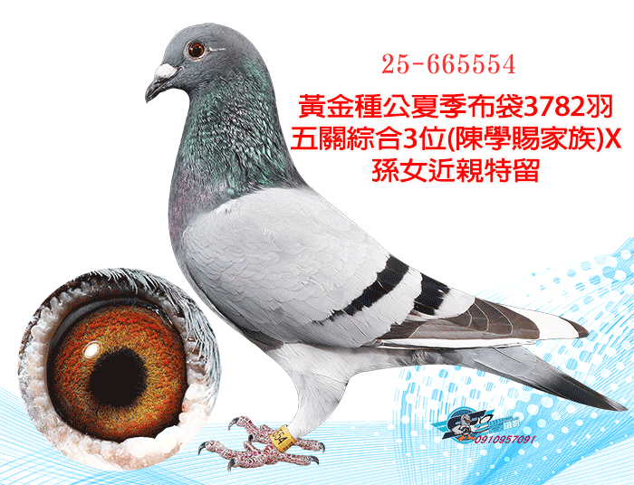 黃金種公夏季布袋3782羽五關綜合3位(陳學賜家族)X孫女近親特留