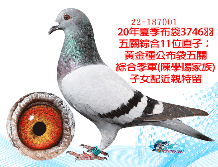 20年夏季布袋3746羽五關綜合11位直子;黃金種公布袋五關綜合季軍(陳學賜家族)子女配近親特留