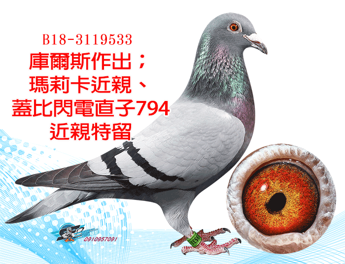 庫爾斯小小號(KBDB省賽鴿王季軍)近親特留;姐2019年宜蘭冠鈞秋季四關綜合8位