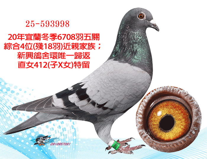 20年宜蘭冬季6708羽五關綜合4位(殘18羽)近親家族;新興鴿舍環唯一歸返直女412(子X女)特留