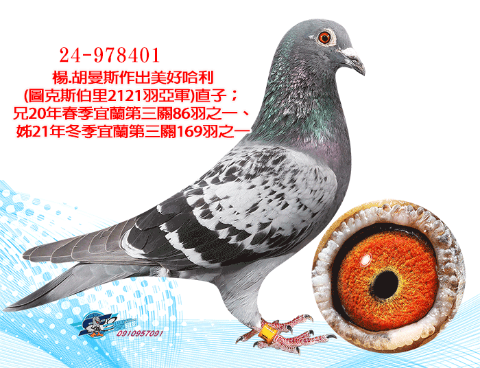 楊.胡曼斯作出美好哈利(圖克斯伯里2121羽亞軍)直子;兄20年春季宜蘭第三關86羽之一、姊21年冬季宜蘭第三關169羽之一