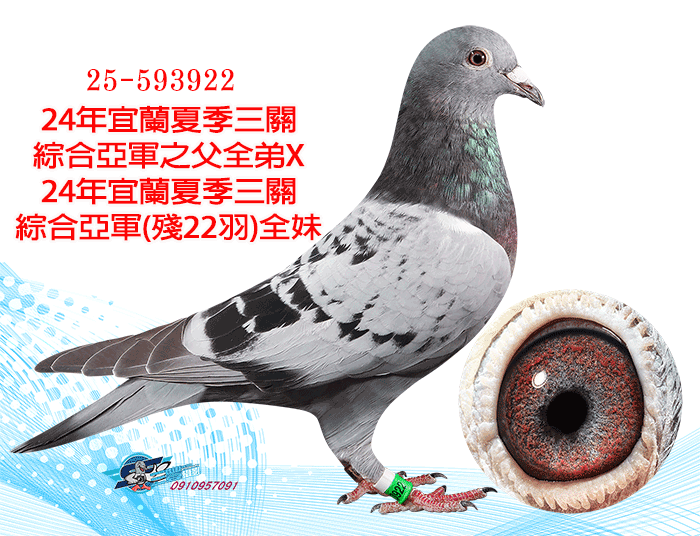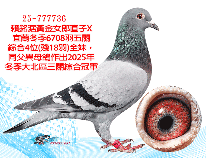 賴銘涺黃金女郎直子X宜蘭冬季6708羽五關綜合4位(殘18羽)全妹,同父異母鴿作出2025年冬季大北區三關綜合冠軍