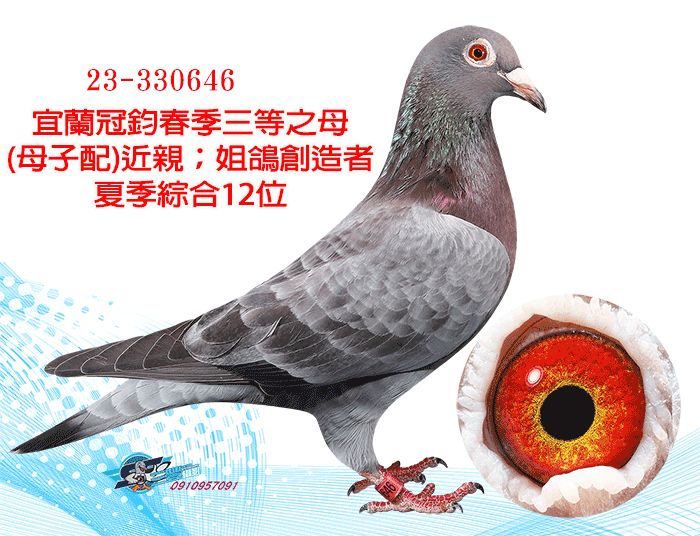 【黃少谷特留種鴿】宜蘭冠鈞春季三等之母(母子配)近親;姐鴿創造者夏季綜合12位