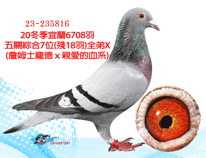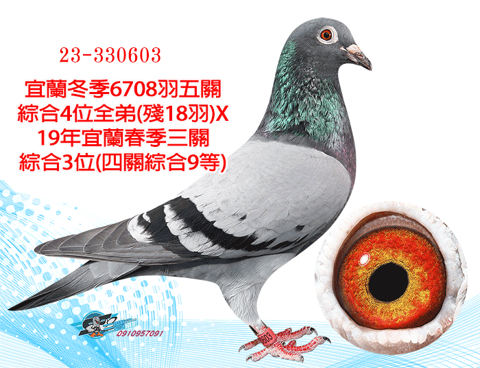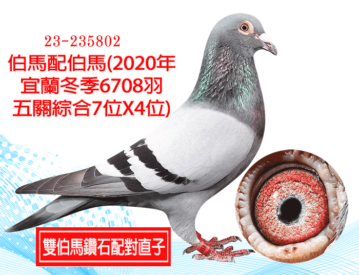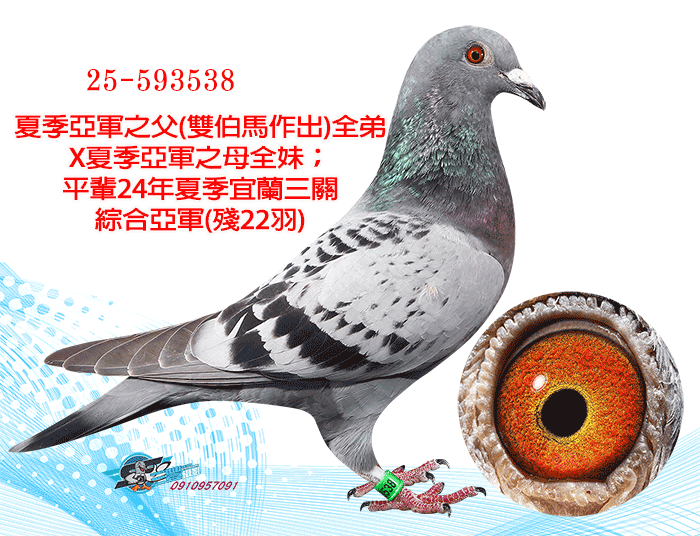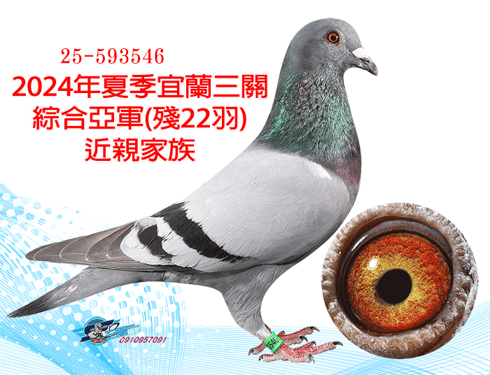 夏季亞軍之父(雙伯馬作出)全弟X夏季亞軍之母全妹;平輩24年夏季宜蘭三關綜合亞軍(殘22羽)