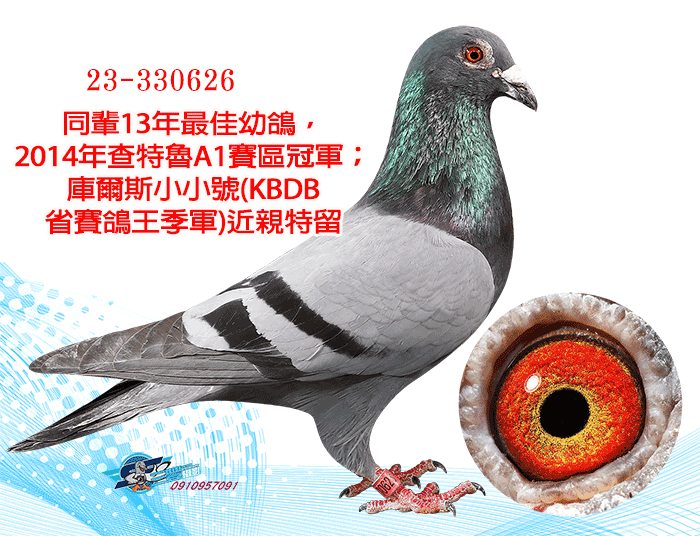同輩13年最佳幼鴿,2014年查特魯A1賽區冠軍;庫爾斯小小號(KBDB省賽鴿王季軍)近親特留