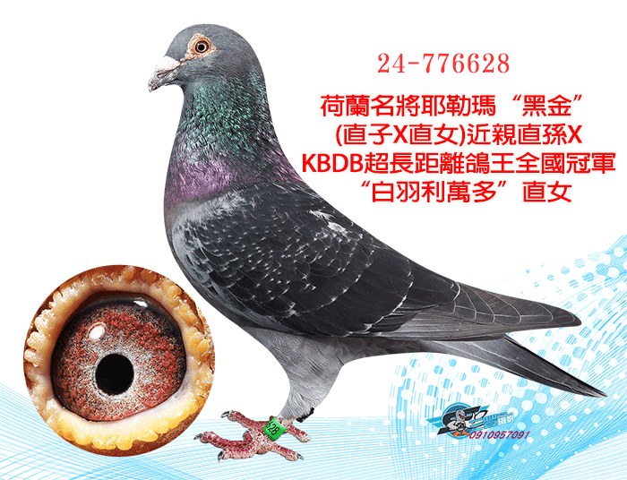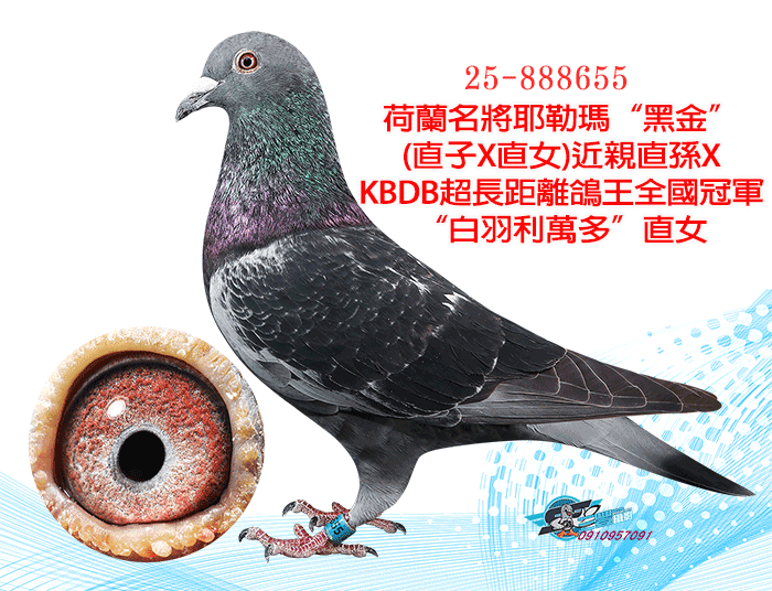 荷蘭名將耶勒瑪“黑金”(直子X直女)近親直孫XKBDB超長距離鴿王全國冠軍“白羽利萬多”直女