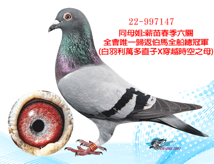 KBDB超長距離鴿王全國冠軍“白羽利萬多”直孫X薪苗春季六關全會唯一歸返伯馬全船總冠軍之妹