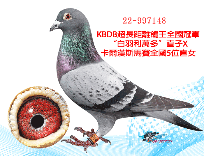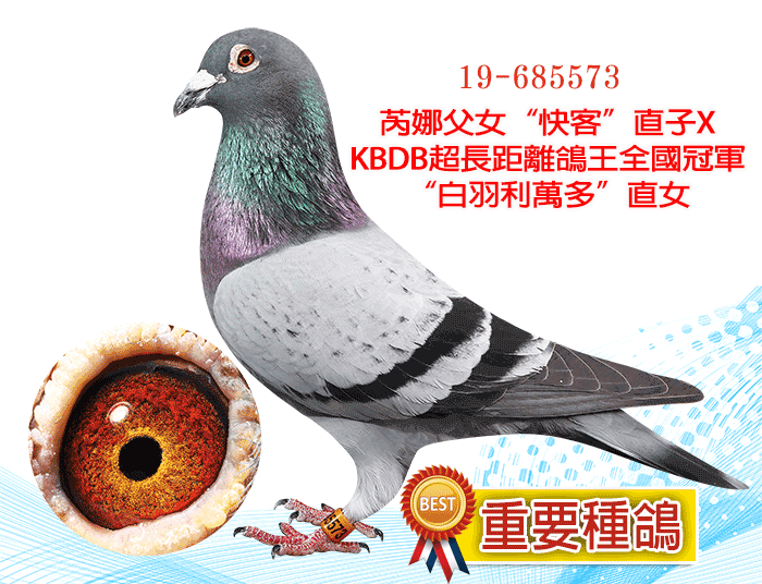 KBDB超長距離鴿王全國冠軍“白羽利萬多”直子X卡爾漢斯馬賽全國5位直女