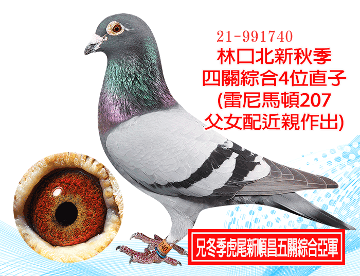 【重要種鴿】林口北新秋季五關綜合優勝直子(雷尼馬頓超級種雄207父女配近親作出)