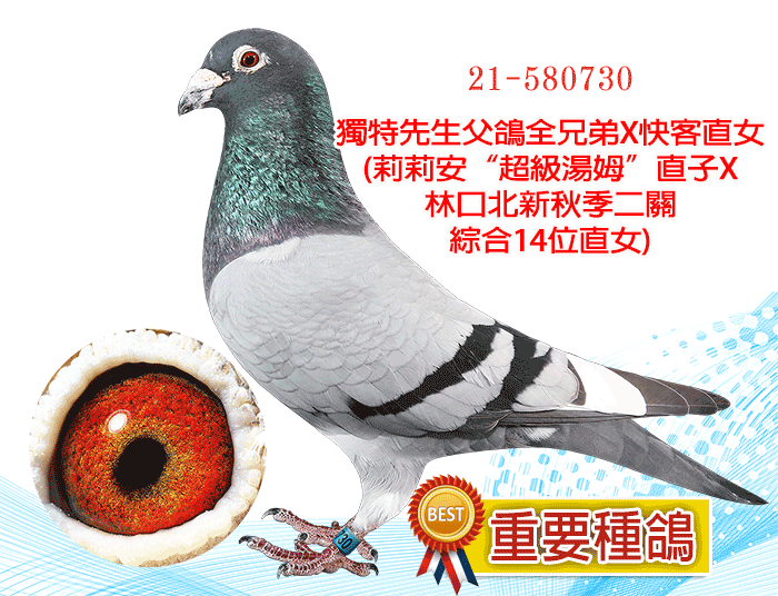 【重要種鴿】獨特先生父鴿全兄弟X快客直女(莉莉安“超級湯姆”直子X林口北新秋季二關綜合14位直女)