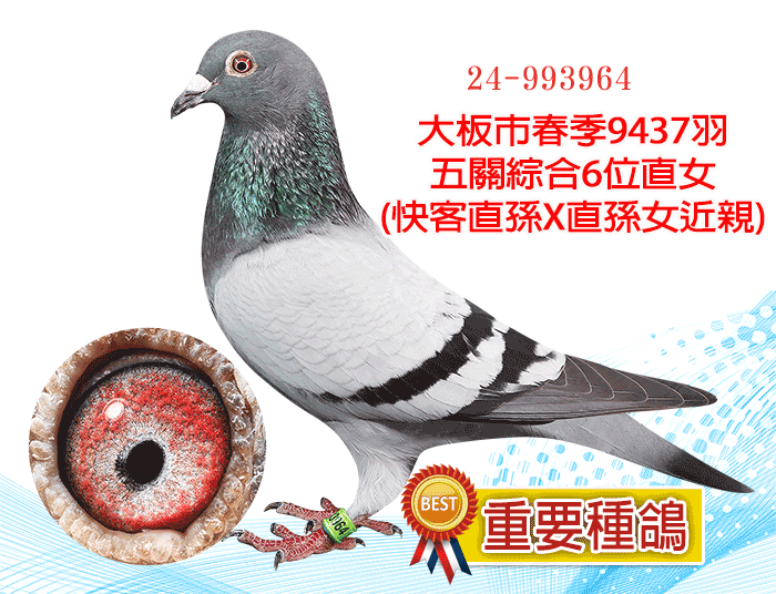 【重要種鴿】大板市春季9437羽五關綜合6位直女(快客直孫X直孫女近親)