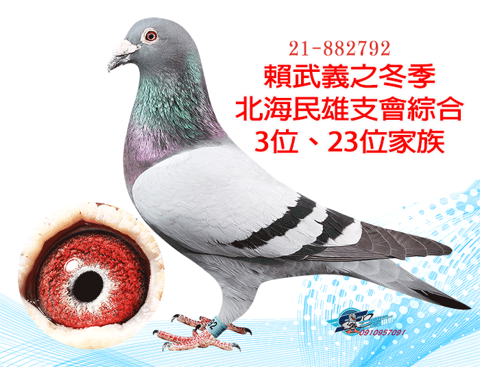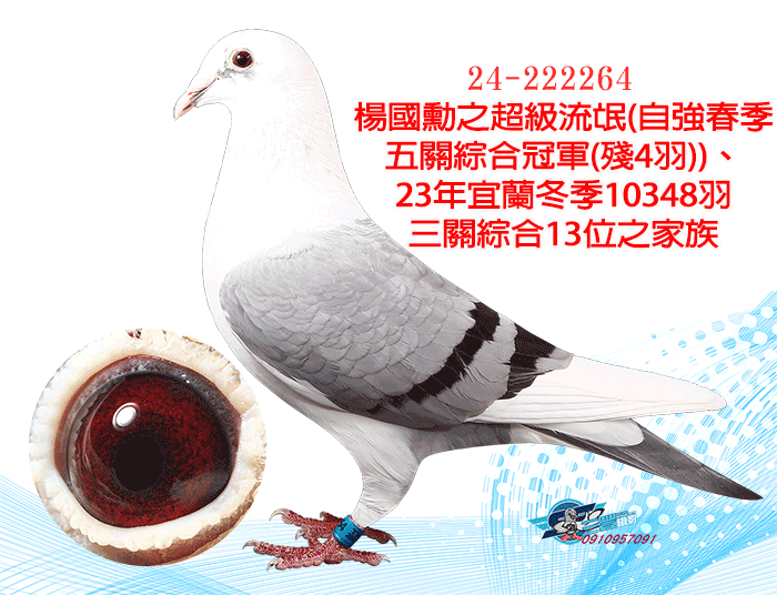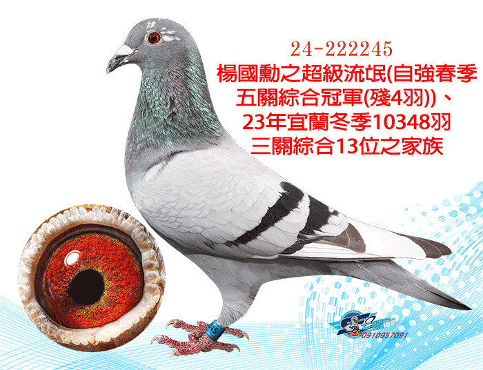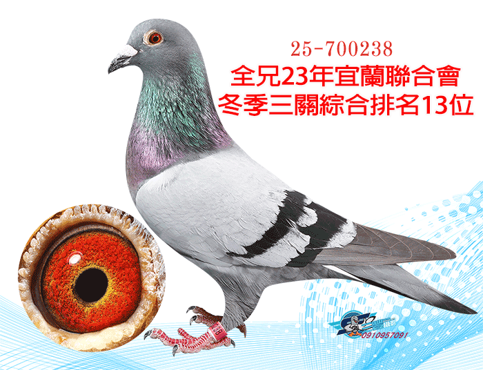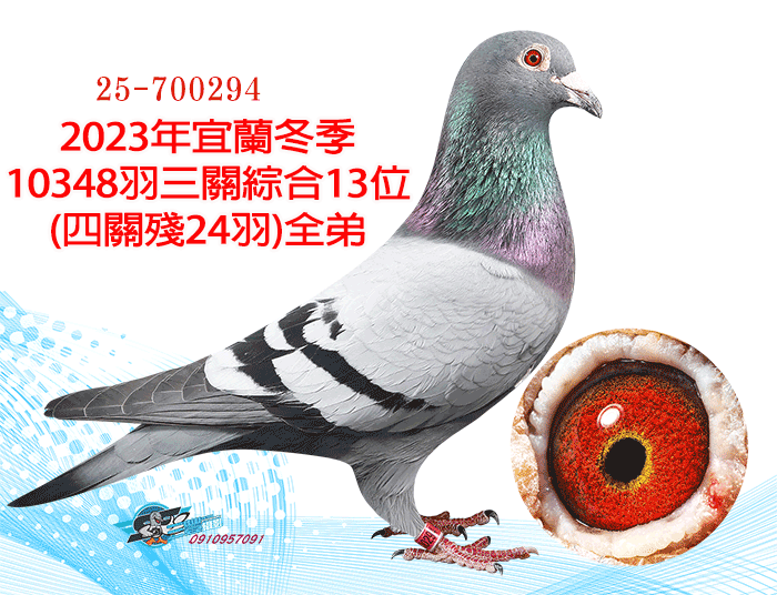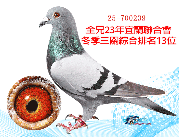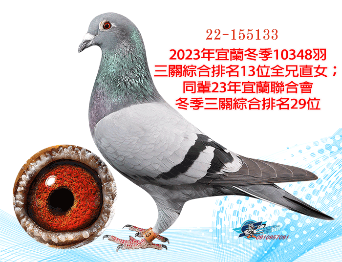全弟23年宜蘭冬季10348羽三關綜合13位(四關殘24羽);同父母作出:23年宜蘭冬季三關綜合29位
