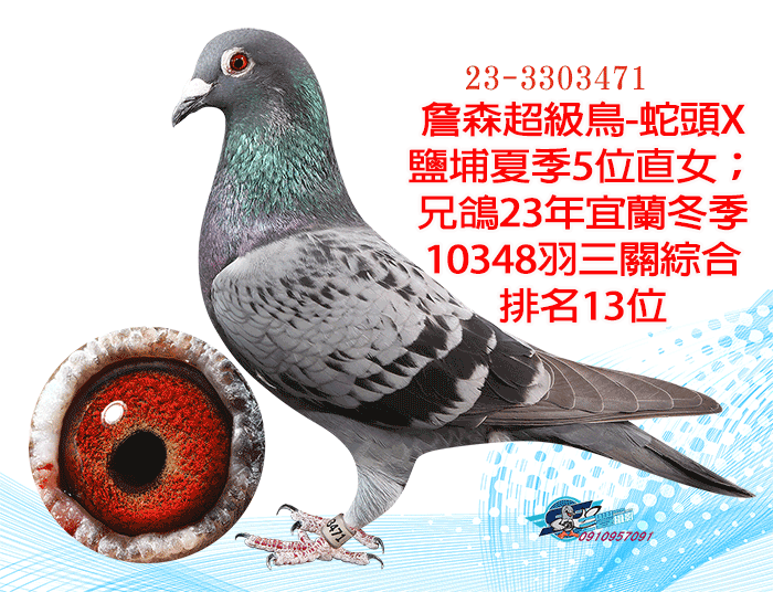 詹森超級鳥-蛇頭X鹽埔夏季5位直女;兄鴿23年宜蘭冬季10348羽三關綜合排名13位