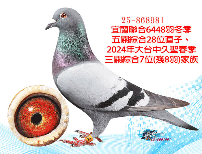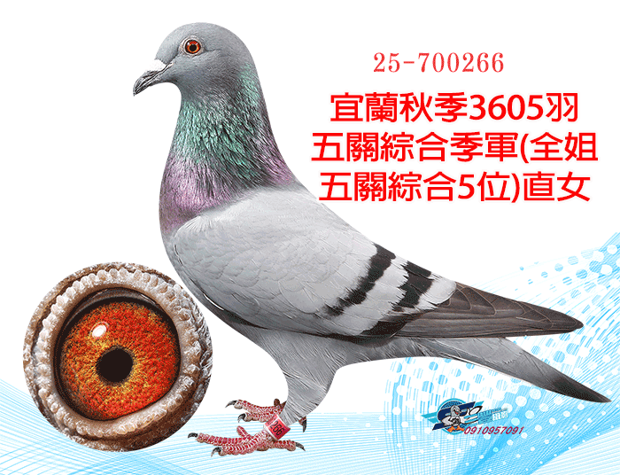 2025年宜蘭冬季10706羽四關綜合7位(殘24羽)父鴿姊 X上億金母-優女