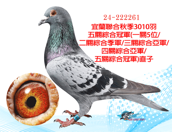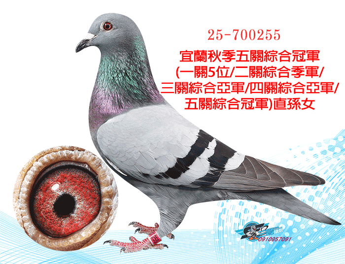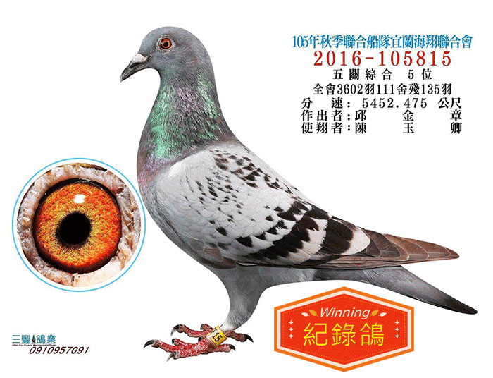 【紀錄鴿】本身2016年宜蘭秋季3605羽五關綜合5位;全妹:16年宜蘭秋季五關綜合季軍、19年宜蘭秋季綜合冠軍