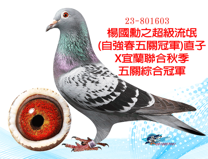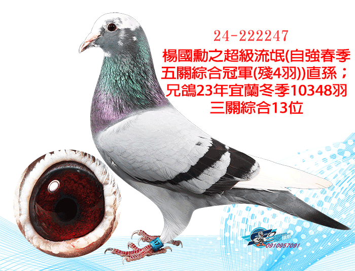 楊國勳之超級流氓(自強春季五關綜合冠軍(殘4羽))直孫;兄鴿23年宜蘭冬季10348羽三關綜合13位