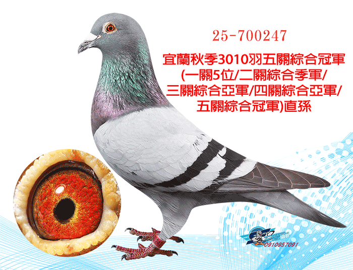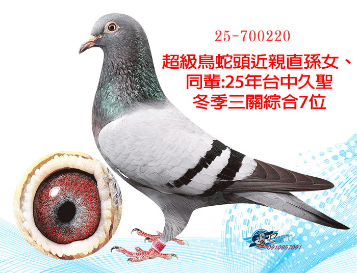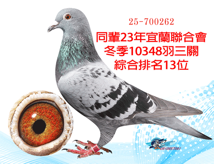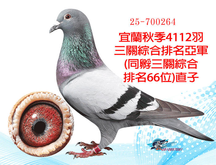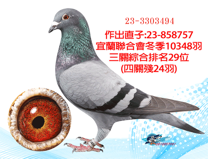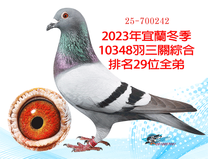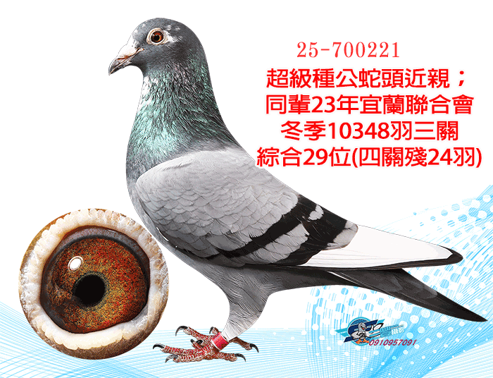 超級種公蛇頭近親;同輩23年宜蘭聯合會冬季10348羽三關綜合29位(四關殘24羽)