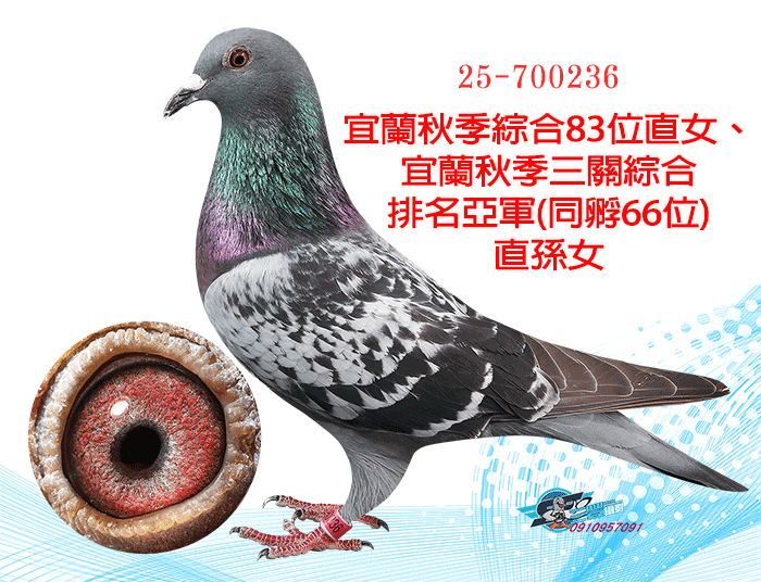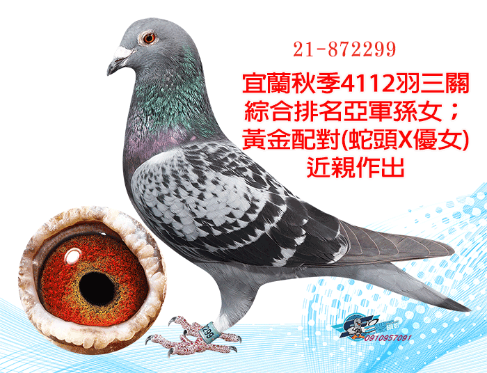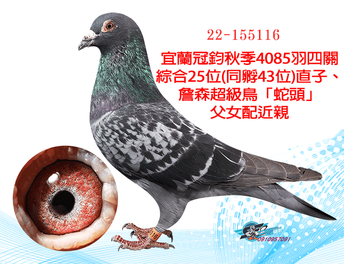 宜蘭冠鈞秋季4085羽四關綜合25位(同孵43位)直子、詹森超級鳥「蛇頭」父女配近親