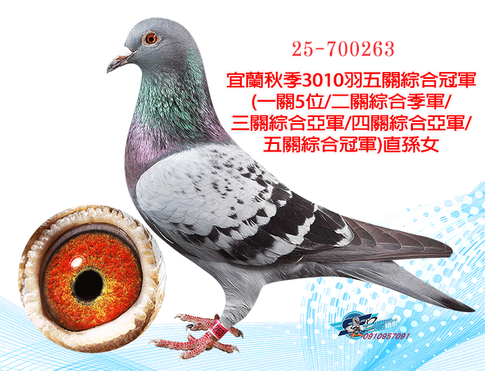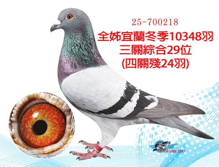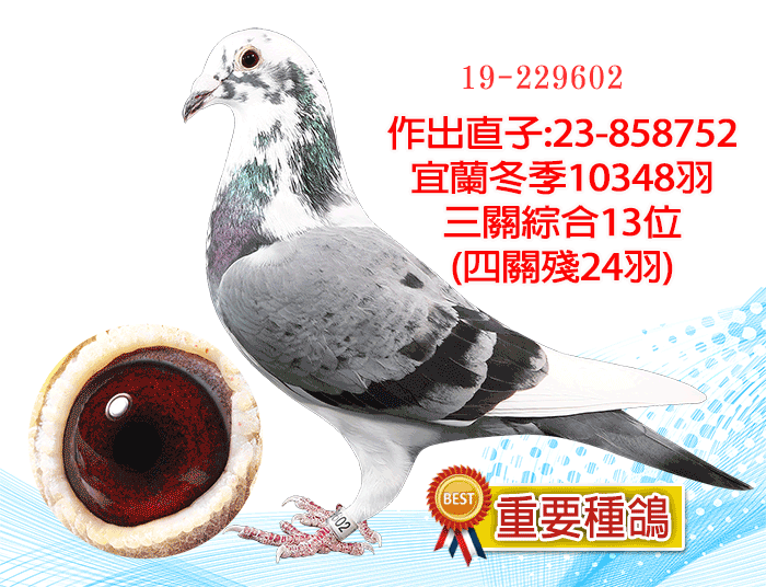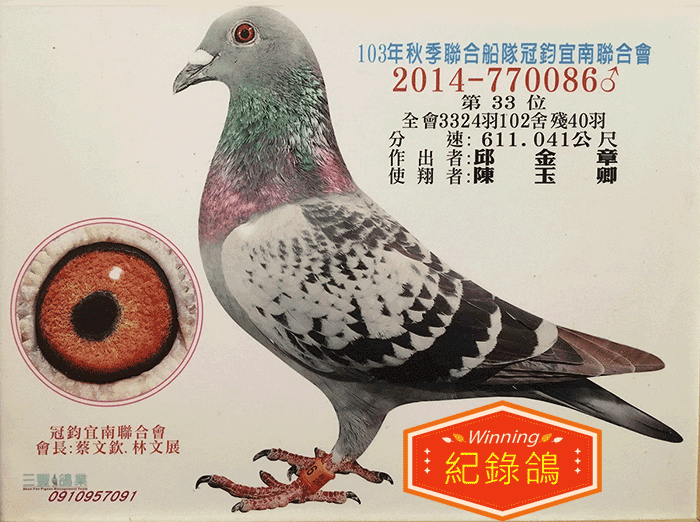 【紀錄鴿】本身2014宜蘭冠鈞3324羽一關綜合33位(殘40羽);子作出:23年宜蘭冬季10348羽三關綜合13位(四關未歸)