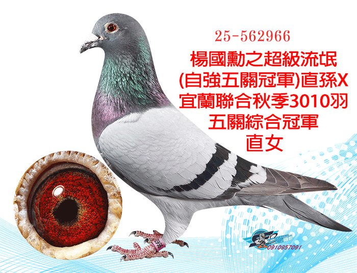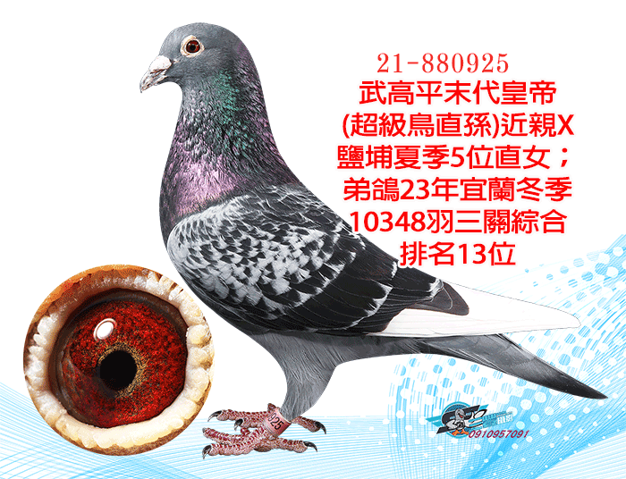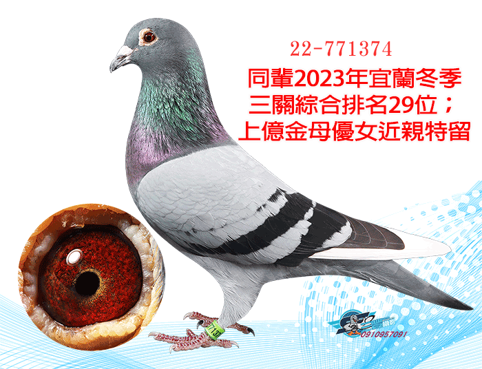 武高平末代皇帝(超級鳥直孫)近親X鹽埔夏季5位直女;弟鴿23年宜蘭冬季10348羽三關綜合排名13位