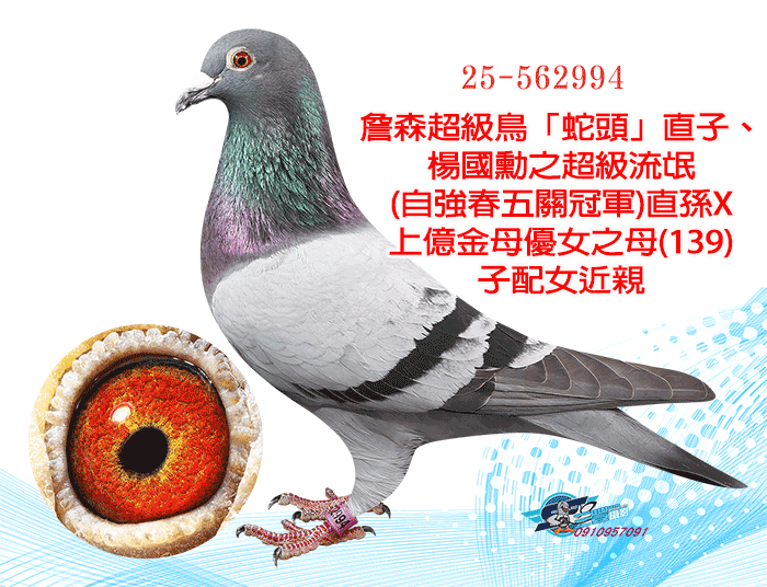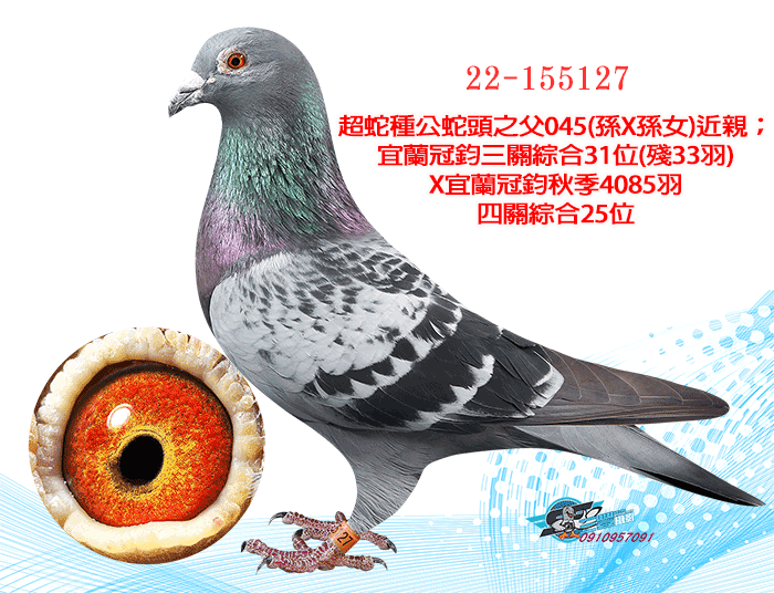 超蛇種公蛇頭之父045(孫X孫女)近親;宜蘭冠鈞三關綜合31位(殘33羽)X宜蘭冠鈞秋季4085羽四關綜合25位