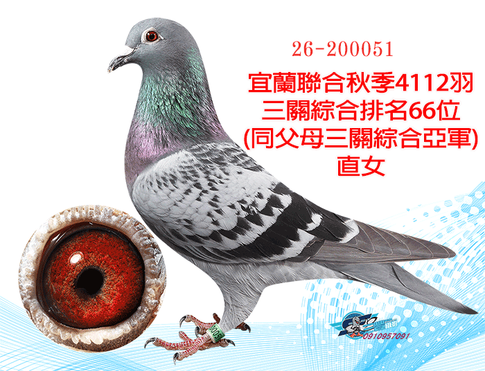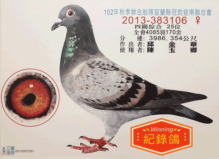 【紀錄鴿】本身宜蘭冠鈞秋季4085羽四關綜合25位(同孵宜蘭冠鈞四關綜合43位)