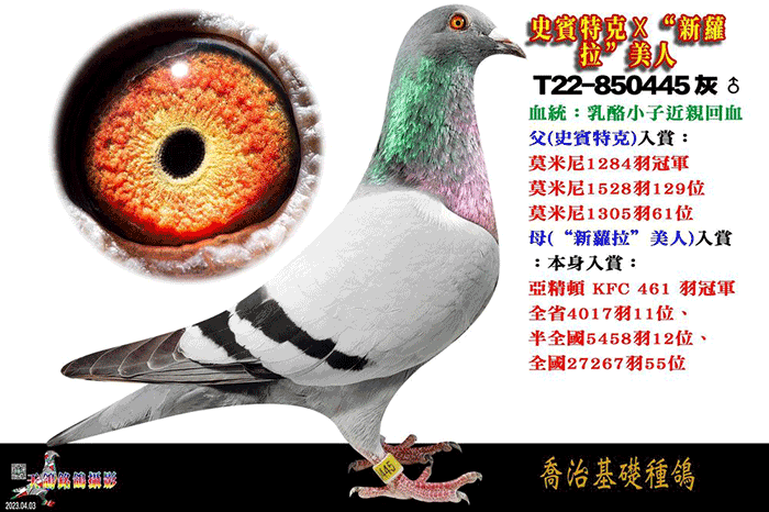 莫米尼冠軍X亞精頓全省4017羽11位;KBDB短距離鴿王4位(乳酪小子)近親家族