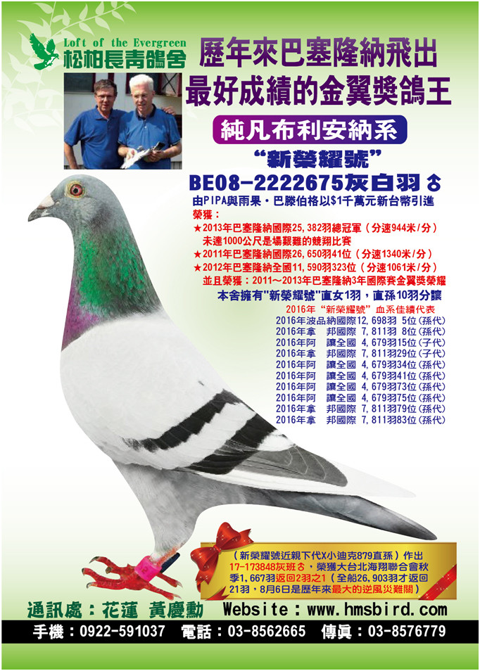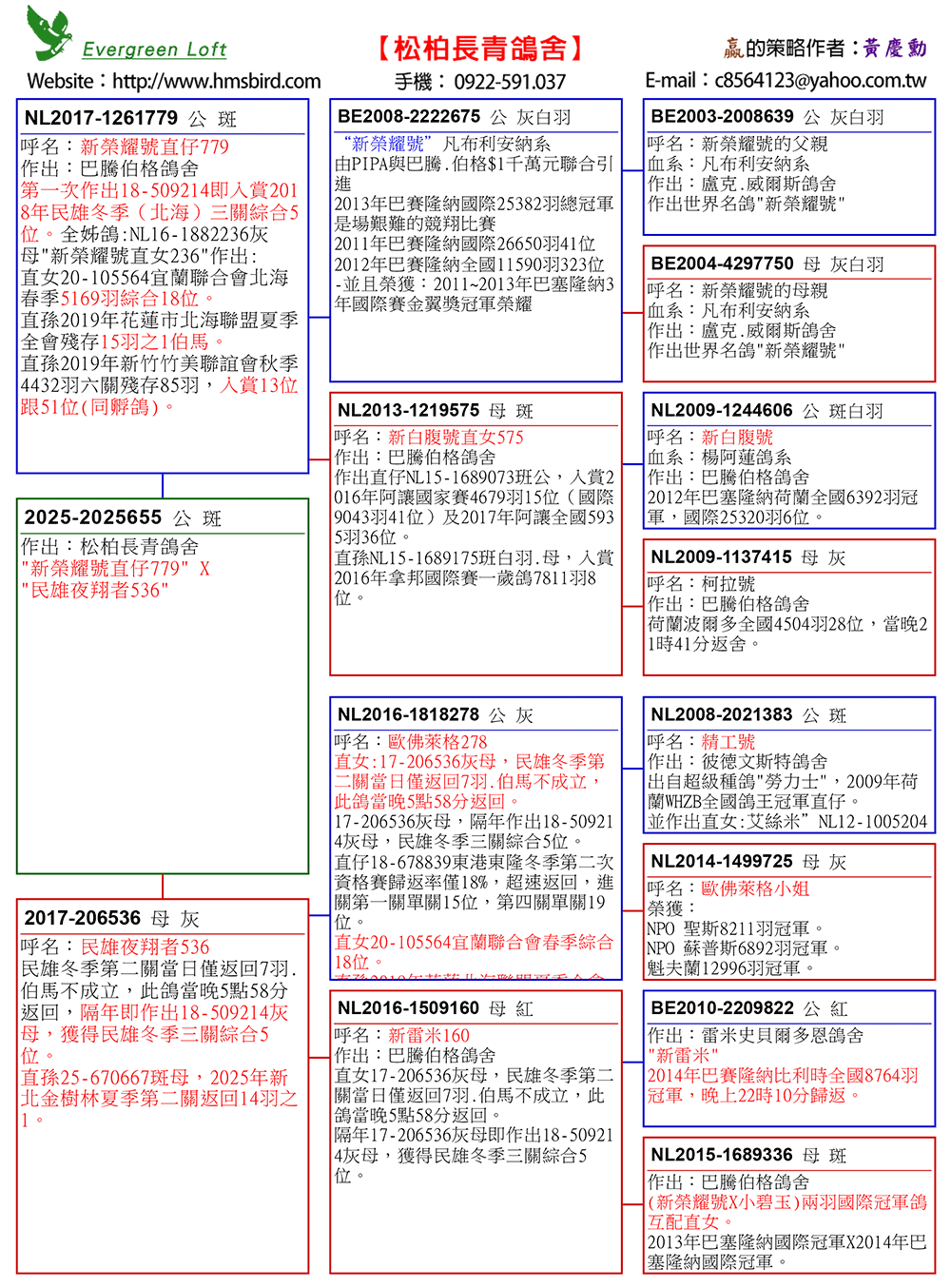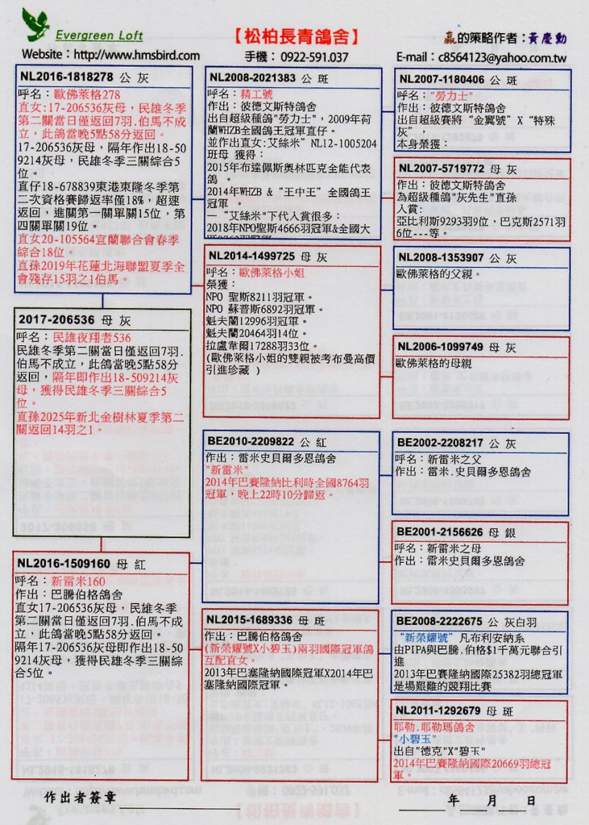 ▲父鴿:NL2017-1261779新榮耀號直仔779