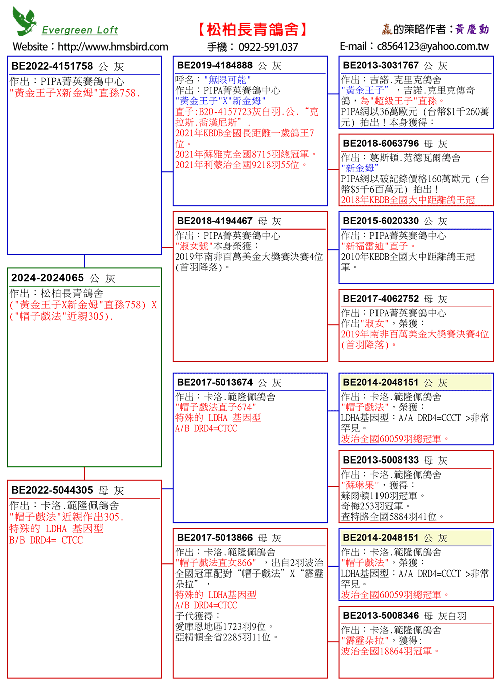 (黃金王子X新金姆)直孫X帽子戲法(波治全國60059羽總冠軍)近親母