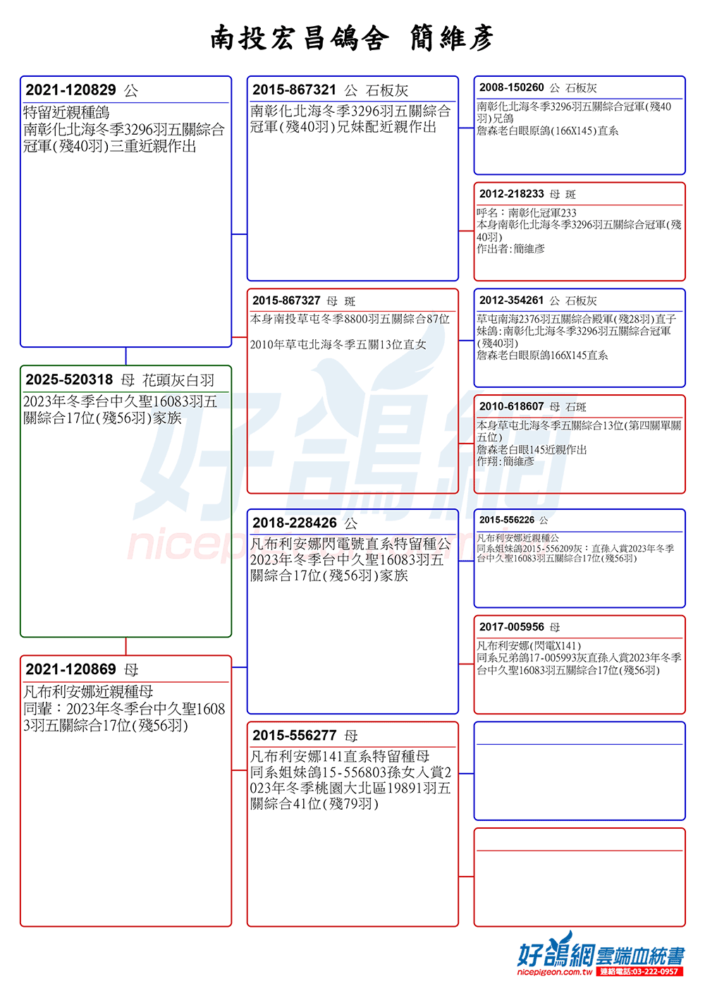 2023年冬季台中久聖16083羽五關綜合17位(殘56羽)家族