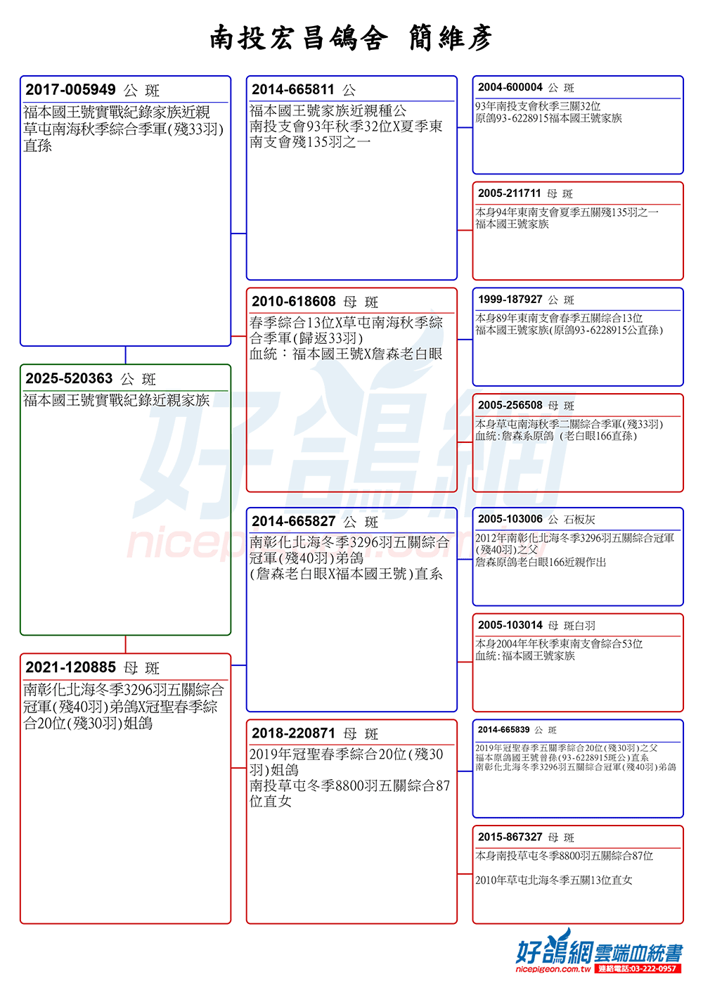 超級888特留種鴿;斗六仁安4610羽綜合季軍(殘48羽)直女;青田夏季殘8羽冠軍(大山輪全船總季軍)家族