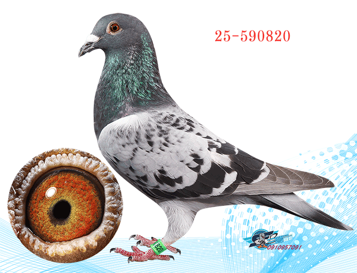 (4)91-02316灰白羽♂黑李3 1 6,其父鴿血統為林波爾,母鴿血統為老西翁系,這羽超級鴿是在1991年自強豪黑李處引進,下代翔續都有延續綜合性及快速歸巢之本能。