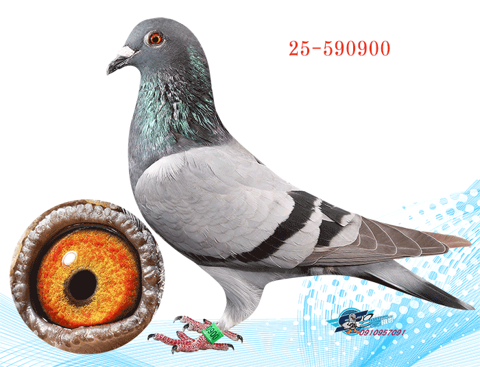 (4)91-02316灰白羽♂黑李3 1 6,其父鴿血統為林波爾,母鴿血統為老西翁系,這羽超級鴿是在1991年自強豪黑李處引進,下代翔續都有延續綜合性及快速歸巢之本能。