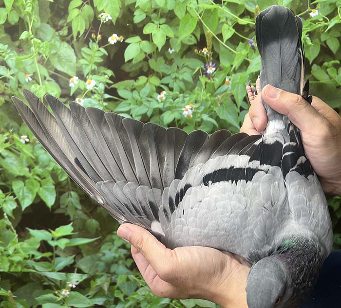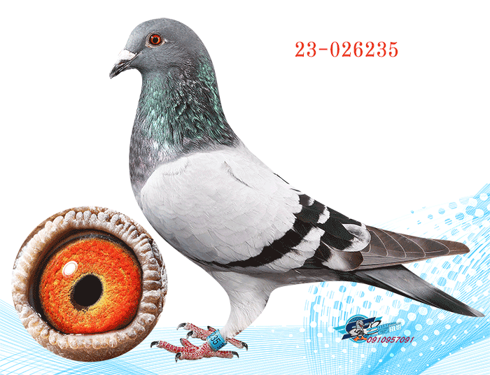 (4)91-02316灰白羽♂黑李3 1 6,其父鴿血統為林波爾,母鴿血統為老西翁系,這羽超級鴿是在1991年自強豪黑李處引進,下代翔續都有延續綜合性及快速歸巢之本能。