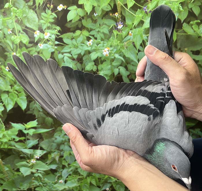 (4)91-02316灰白羽♂黑李3 1 6,其父鴿血統為林波爾,母鴿血統為老西翁系,這羽超級鴿是在1991年自強豪黑李處引進,下代翔續都有延續綜合性及快速歸巢之本能。