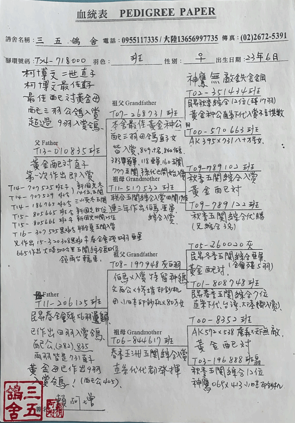 ▲曾祖父:2002-351434神鷹無敵鐵金剛(秋季全會殘17羽12位平分)