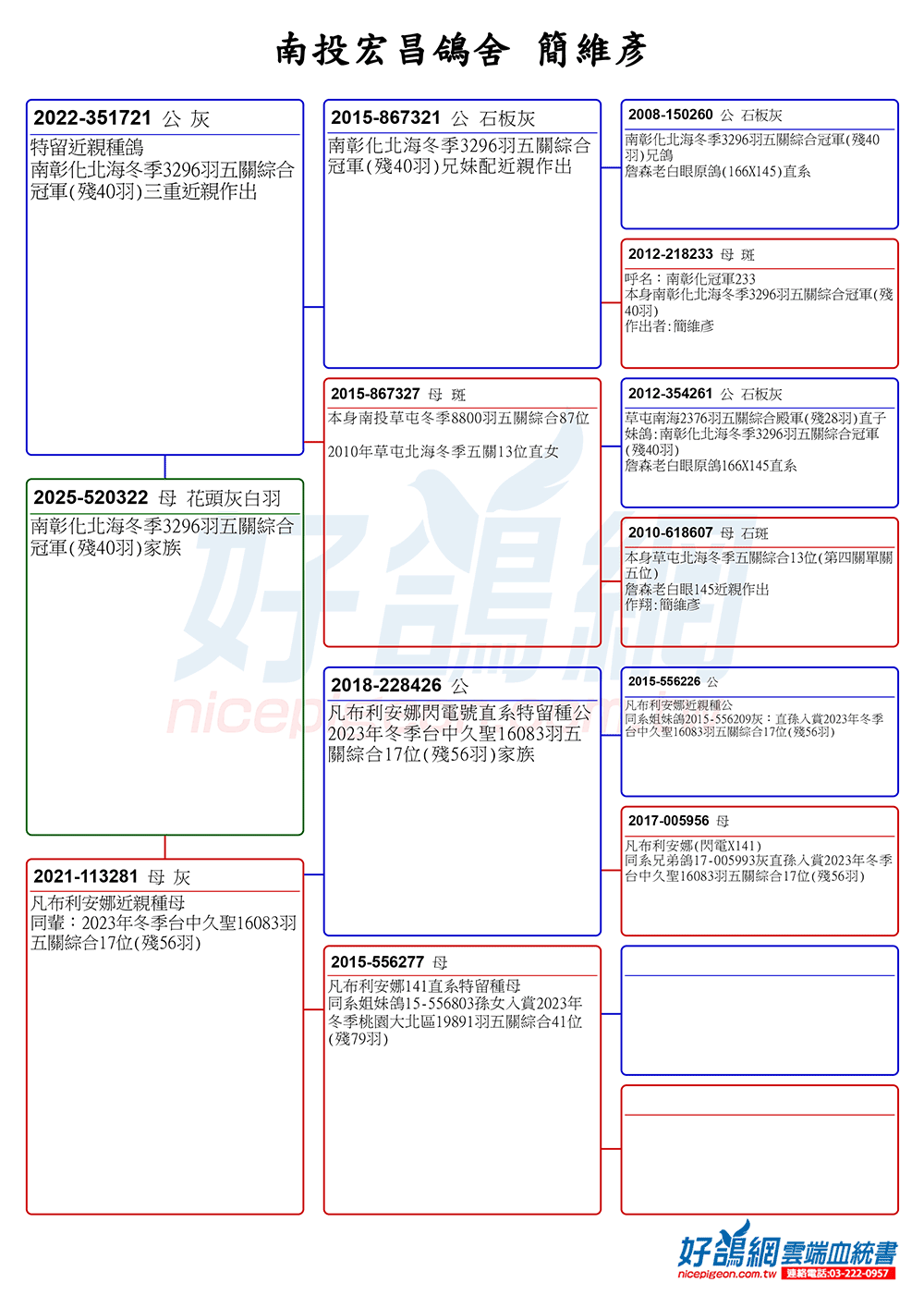 南彰化北海冬季3296羽五關綜合冠軍(殘40羽)家族