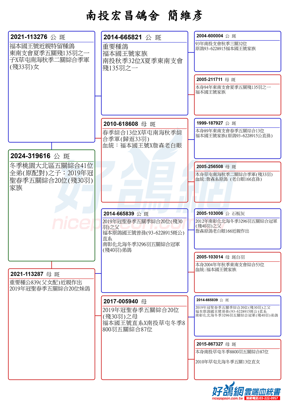 冬季桃園大北區五關綜合41位全弟(原配對)之子;2019年冠聖春季五關綜合20位(殘30羽)家族