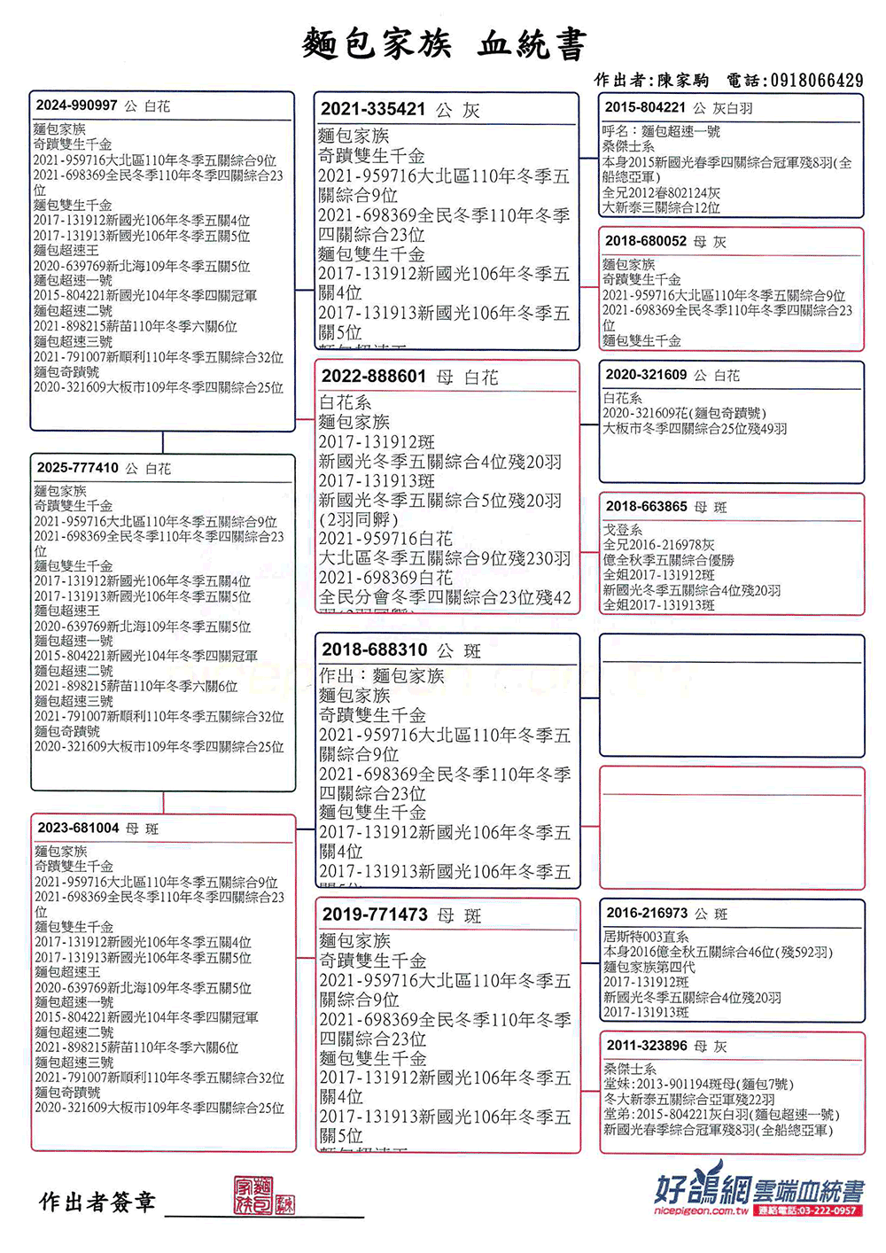 ▲曾祖父:15-804221春季新北新國光四關綜合冠軍(殘8羽)