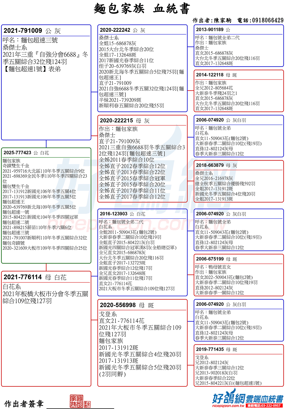 超級888特留種鴿;斗六仁安4610羽綜合季軍(殘48羽)直女;青田夏季殘8羽冠軍(大山輪全船總季軍)家族
