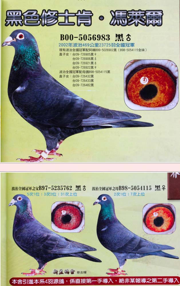 ▲2000-5056983入賞2002年波冶23725羽全國冠軍▲B1998-5054115