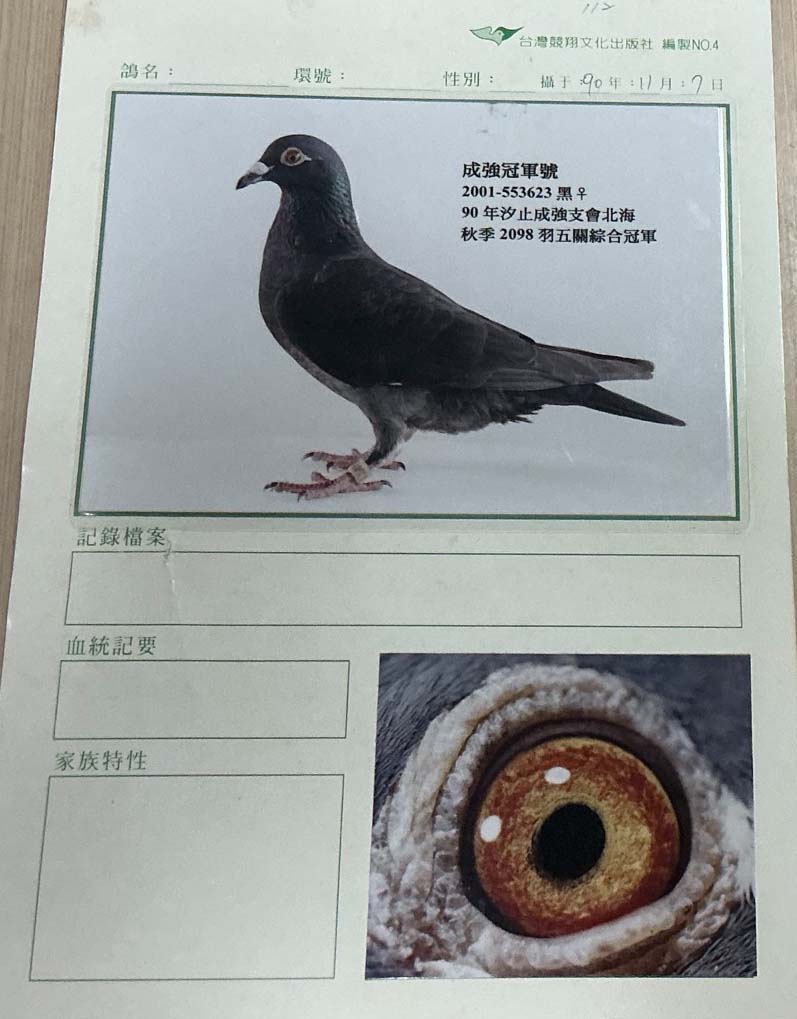 ▲父鴿:14-120628春季汐止成強2322羽五關綜合冠軍