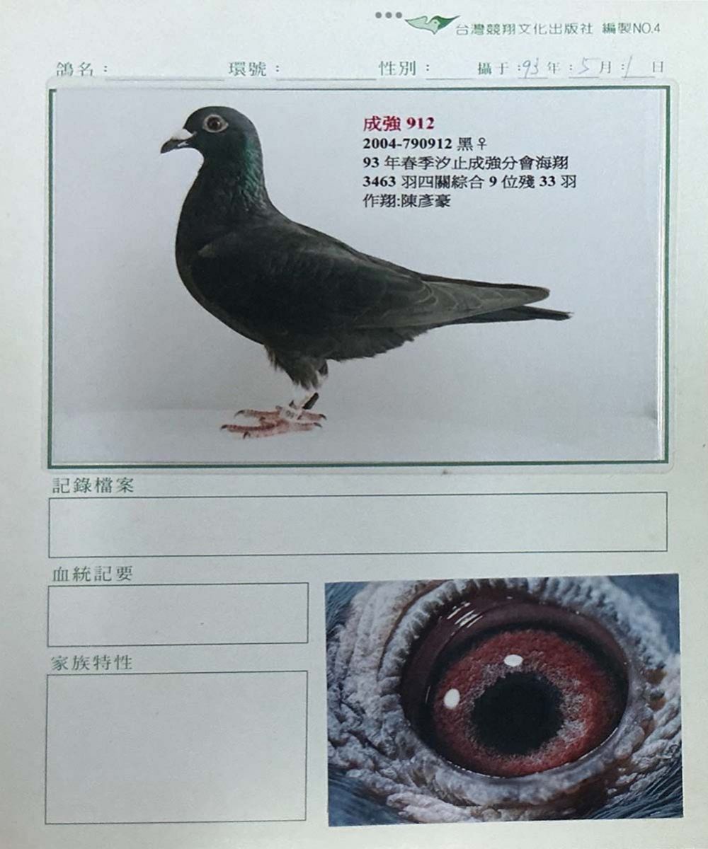 ▲曾祖母:04-790912春季汐止成強3463羽四關綜合9位(殘33羽)