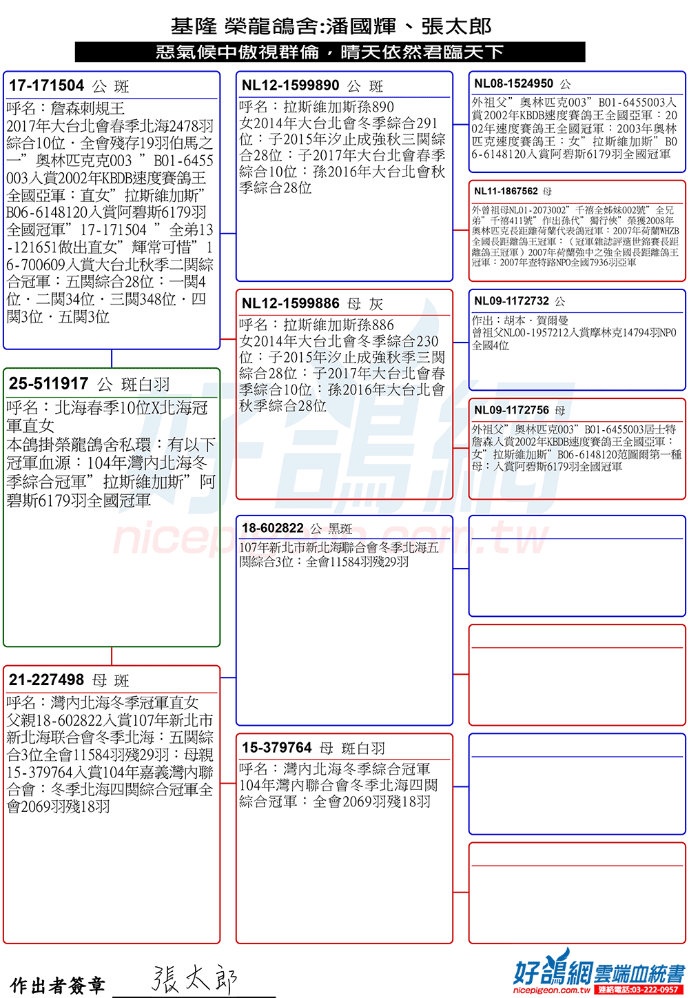 ▲父鴿:17-171504詹森刺規王-春季大台北二關綜合10位