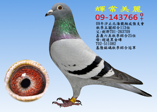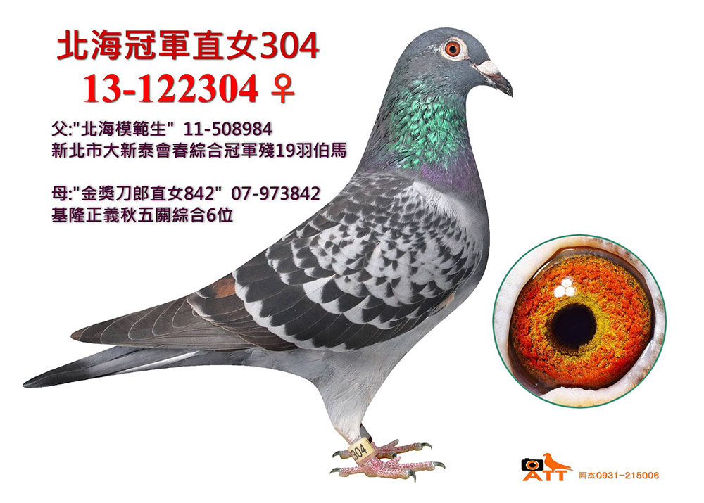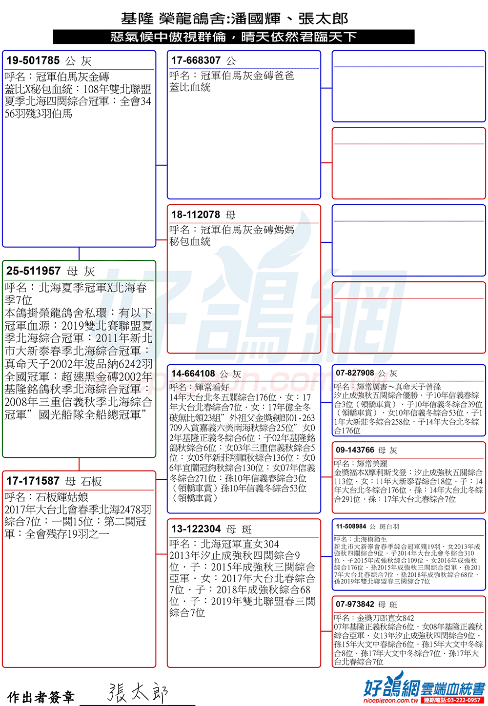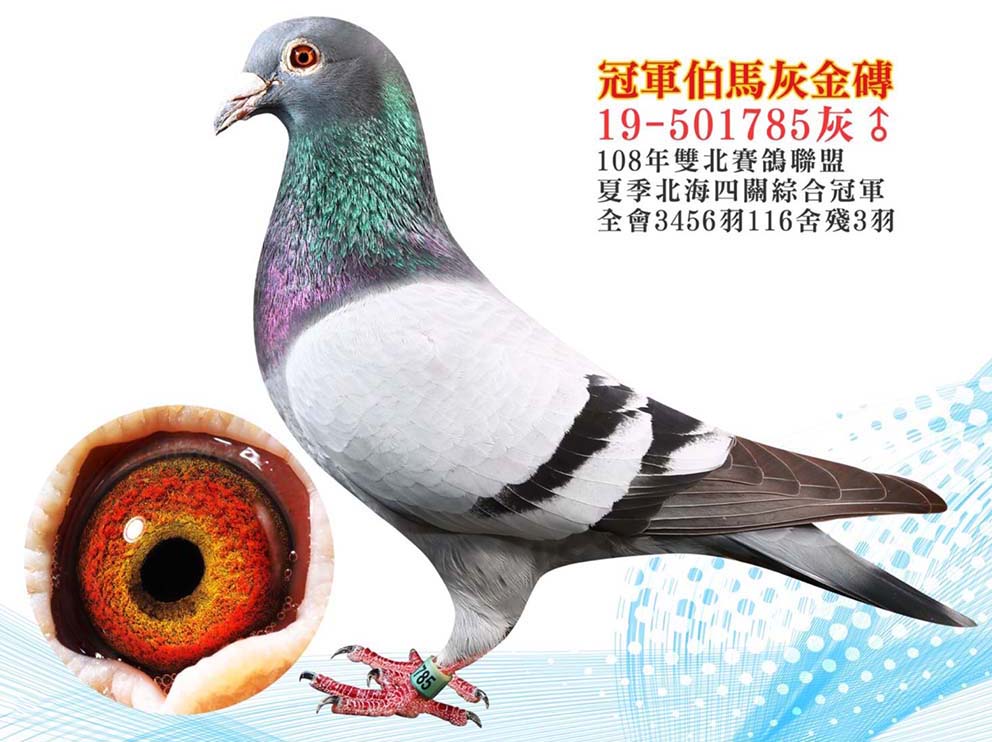 ▲父鴿:19-501785冠軍伯馬灰金磚