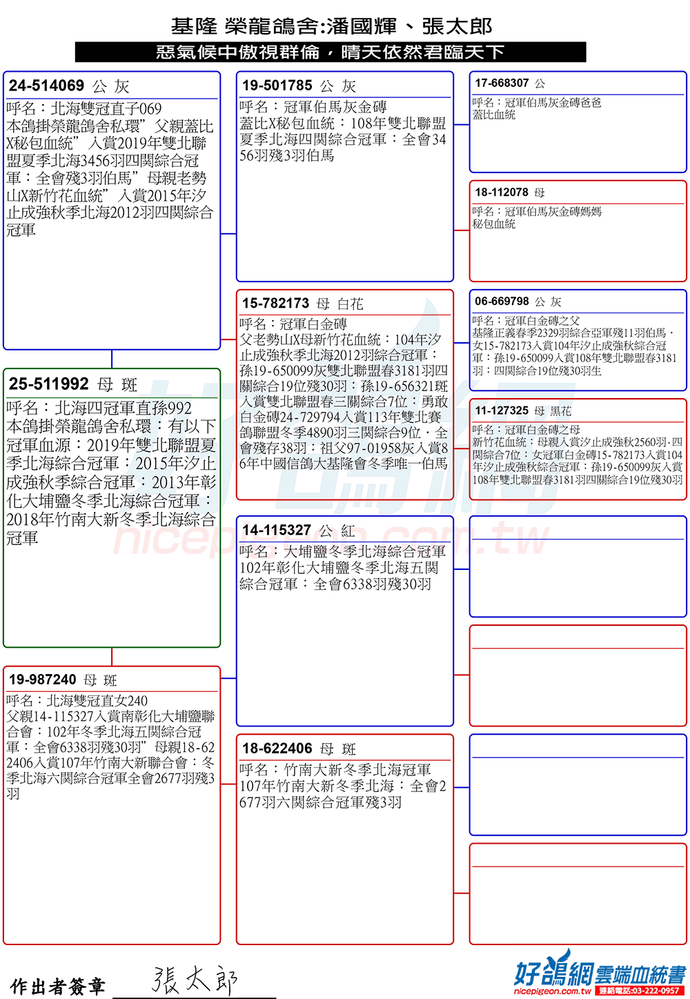▲外祖母:18-622406冬季苗栗大新2677羽六關綜合冠軍(殘3羽)