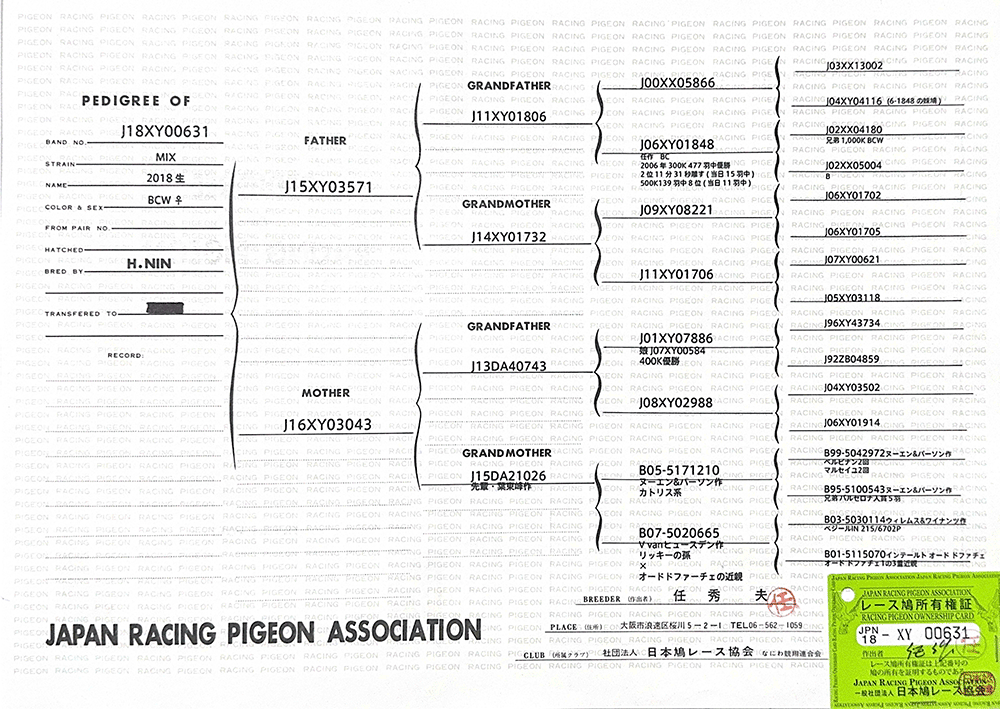 ▲母鴿:J16-XY03043(贈送鴿3A)