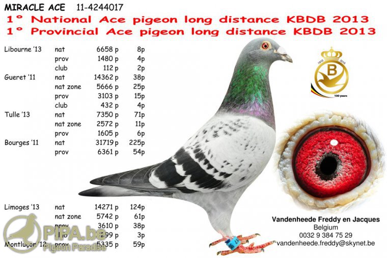 ▲B11-4244017 奇蹟鴿王 13-KBDB長距離鴿王全國冠軍