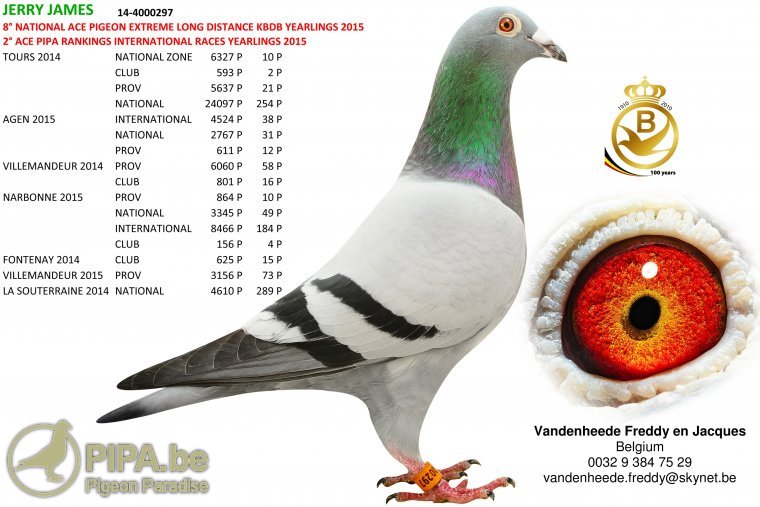 ▲B14-4000297 傑瑞詹姆斯 15-KBDB超長距離一歲鴿王全國8位