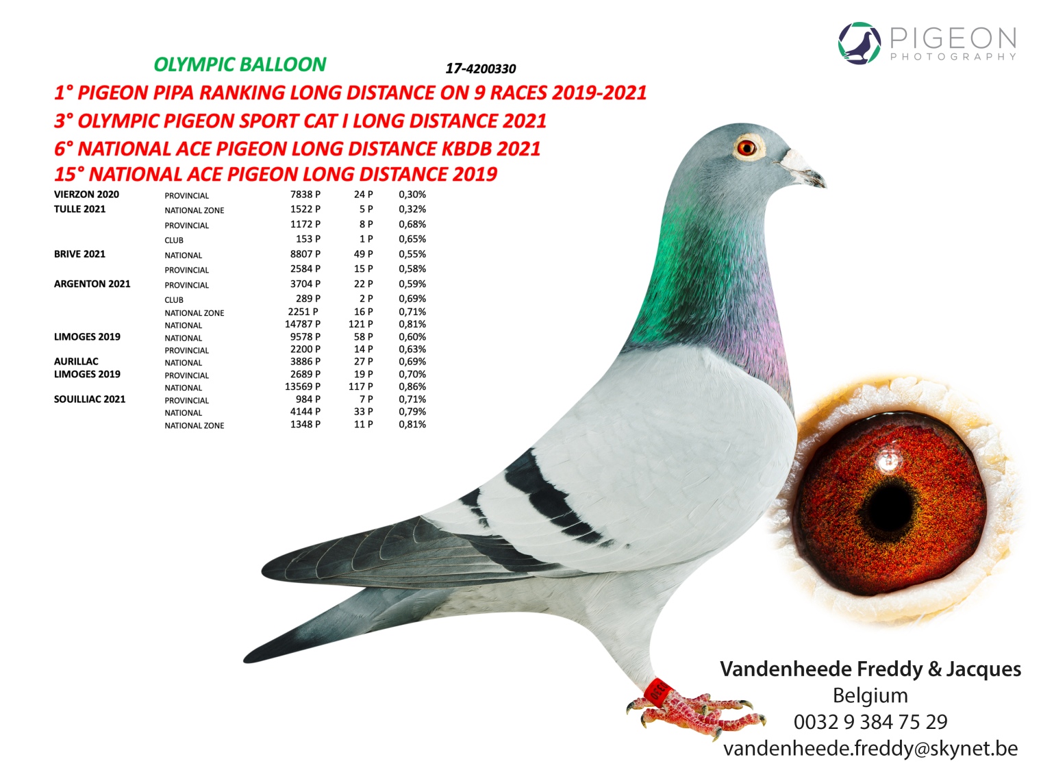 ▲B17-4200330 21-KBDB長距離鴿王全國6位,21-六場長距離鴿王全國冠軍